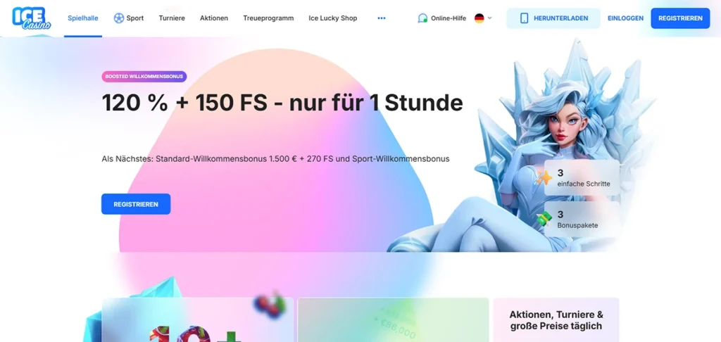 | 3 | ICE Casino | 25€ oder 50 Freispiele | 3x (Gewinn) | ⭐⭐⭐⭐ |